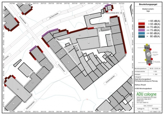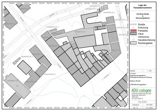 Im Rahmen des geplanten Neubaus eines Straßenabschnittes in Mönchengladbach haben wir eine schalltechnische Untersuchung hinsichtlich der Bestimmung eines generellen Anspruchs auf Schallschutz gemäß 16. BImSchV (Verkehrslärmschutzverordnung) durchgeführt. Hierbei wurden ein lärmmindernder Farbahnbelag sowie Lichtsignalanlagen an allen Kreuzungen berücksichtigt.